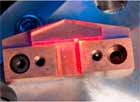 該設(shè)計采用了透明的單晶碳化硅(SiC)組件作為激射/泵浦側(cè)的熱沉,以及附在增益元件非激射側(cè)的通常銅熱沉。這個組件的導(dǎo)熱特性可以與銅媲美,能提供優(yōu)異的熱傳輸,且不與激光器的運行產(chǎn)生光干擾。